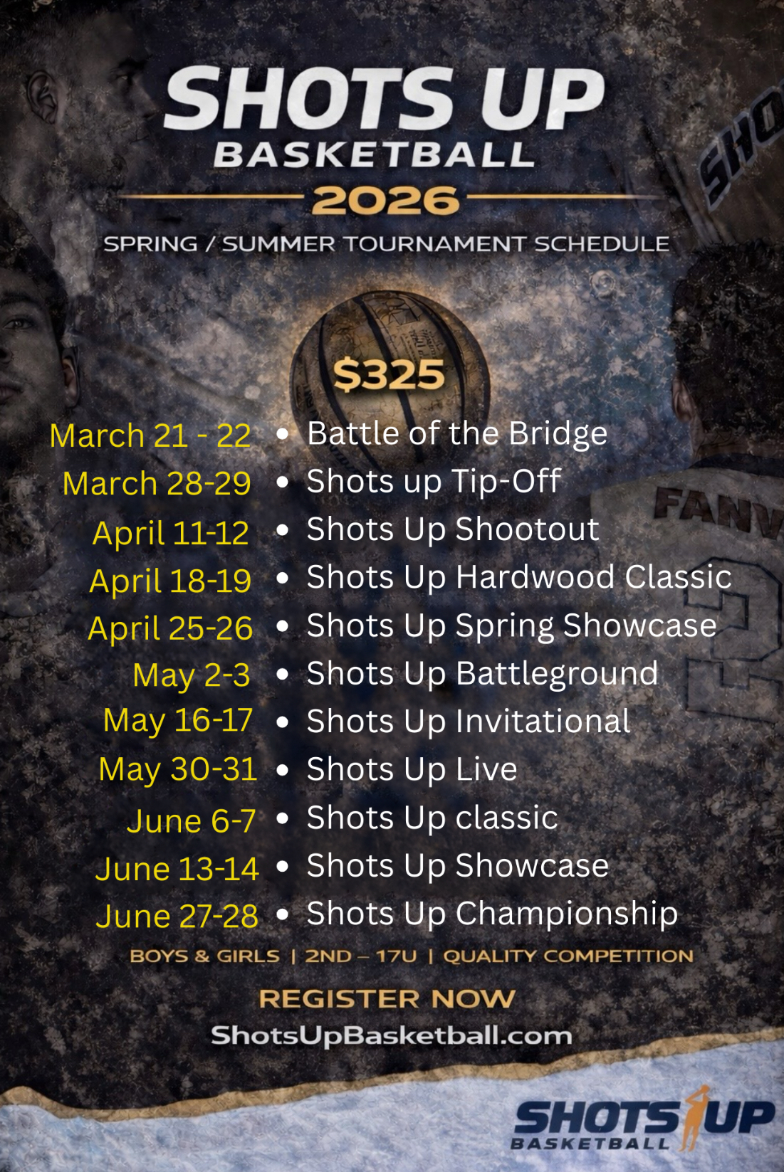 Shots Up Basketball offers our elementary, middle, and high school boys and girls in grades 4 through 12 a variety of opportunities to improve their game. Our training programs, camps and clinics enable players to reach their next level development goals. Our travel teams, tournaments, and events empower our players to attain a competitive edge. Our commitment is to instill confidence on and off the court, strong work ethic, focus through basketball skill development, and strengthen knowledge of the game.