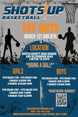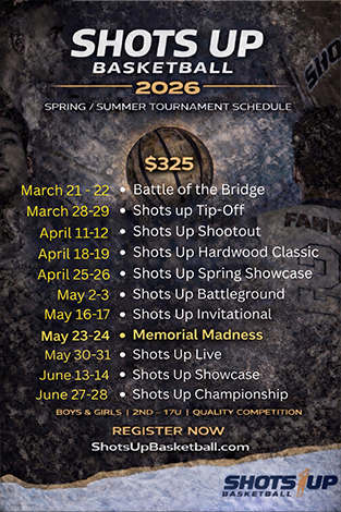 Shots up basketball supports an affiliate organization of boys and girls year-round travel teams (grades 4 through 12) under the Amateur Athletic Union of the U.S. We welcome new players, coaches, and teams. Please check back for our attractive team packages offered within the Shots Up Organization.